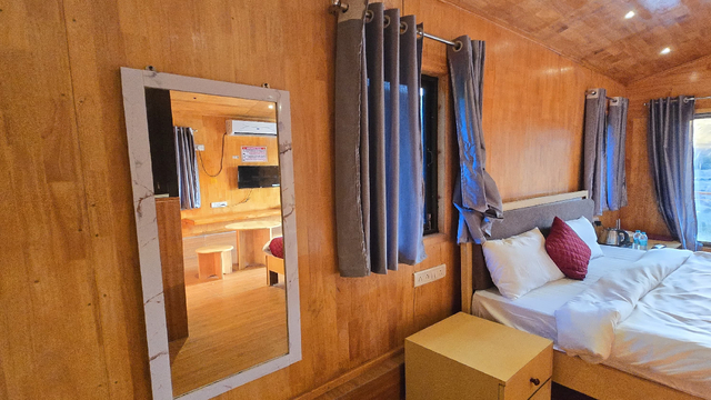 Experience rustic charm and modern comfort in our Wood House W1. Nestled amidst nature, this uniquely designed wooden retreat offers a cozy ambiance, blending natural elements with contemporary amenities. Perfect for those seeking a serene escape, the Wood House W1 features elegant interiors, spacious living areas, and breathtaking views, making it an idyllic haven for relaxation and rejuvenation.